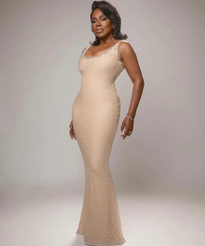 Erika Alexander looked effervescent as always in a Claude Kamenipurple printed gown, equipped with a corset and mermaid skirt right at the knees. The print and vibrant colors were lovely and the styling with the multi-colored hair strands that crowned her head were joyous and complementary to her style and personality. If anything she looked to be having the most fun out of everyone there!