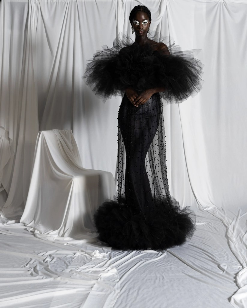 The “Project Runway: All Stars” Season 20 winner showcased his collection at New York Fashion Week as well, utilizing fabrics traditionally used in outerwear as mediums for beautifully crafted sets and gowns. His contrast of structured sets and sharp, harsh cutouts mixed with the flounce and light natured gowns in his offerings showcases his prowess and range. He does an immaculate job of incorporating his own personal touches into classic outerwear styles, and the use of the extended collars as well as folded over dress panels work lovely together with the athleisure-like vibe overall. Whereas the only color utilized outside of black and white was red, the red pieces themselves were integral parts of the line with many standing out as showstoppers, and the black and white prints such as a check plaid, striated line gradient, and even a body motif offered modern and innovative takes on current staples and trends. His use of tulle manipulation is sweet, especially in the way he compliments the female form, and his utilization of skirt and dress cutouts which differ from the normal slit are so tastefully stylish. Needless to say I was enamored by his work, and with the likes of Michelle Williams already wearing his work I’m sure we’ll see even more notable names in Bishme Cromartie very soon.
