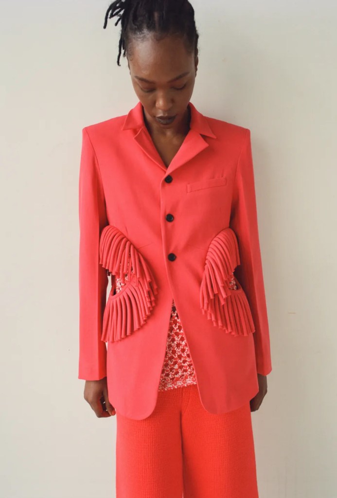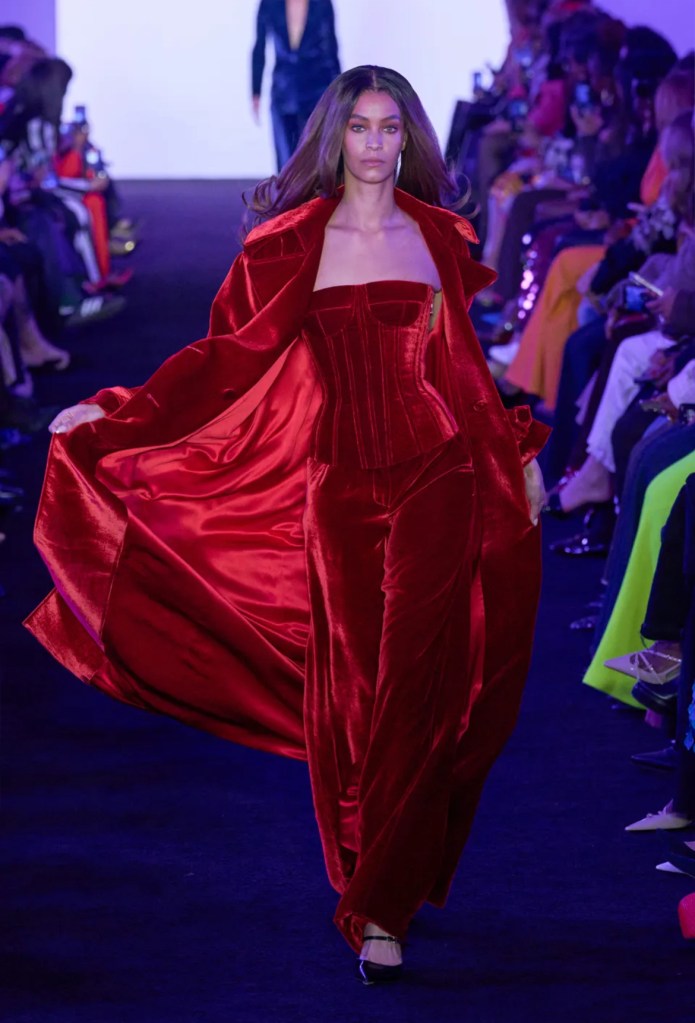 Timeless, bold and corseted to the GAWDS is how I would describe Sergio Hudson’s FW 24’ collection. Inspired by the 70’s, Hudson effortlessly combines denims and leathers with cinched waists and classic silhouettes while incorporating an array of colors appealing to the eye, such as emeralds, orchids and mustard yellows. Through the use of belts, corsets and expert tailoring to accentuate the feminine form, he beautifully captures a confident woman; a powerful woman; a leading woman if you will; and does a great job at styling her with rich outerwear pieces. Between the inclusion of tailored wear and double breasted enclosures, Hudson’s woman is just as much business savvy as she is poised and posh, with offerings that would be absolutely perfect for fictional characters Olivia Pope or Annalise Keating. Overall a stunning showing from Sergio Hudson, and one that I’m sure we will see much more of in the future on some of our favorite celebrities.