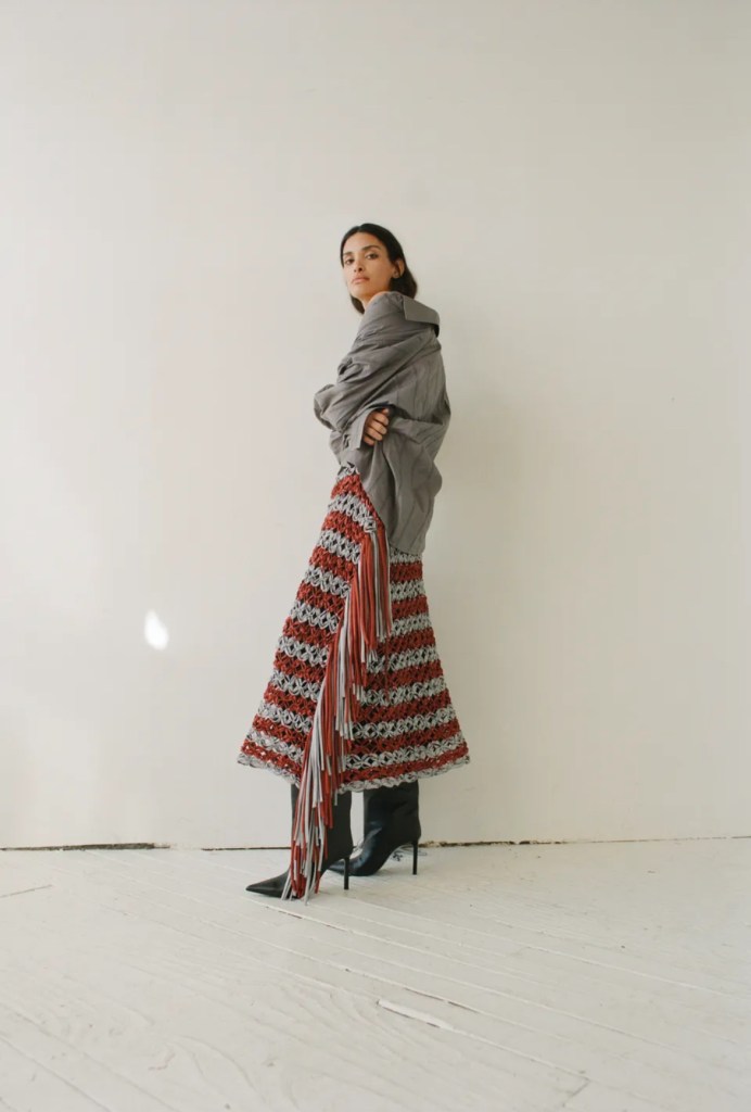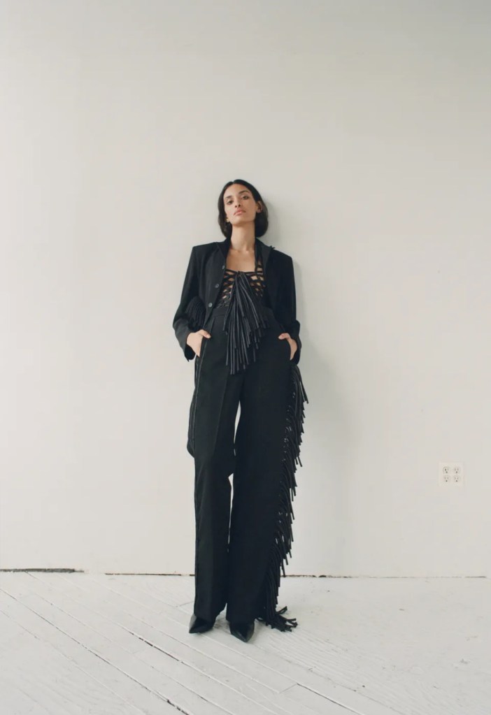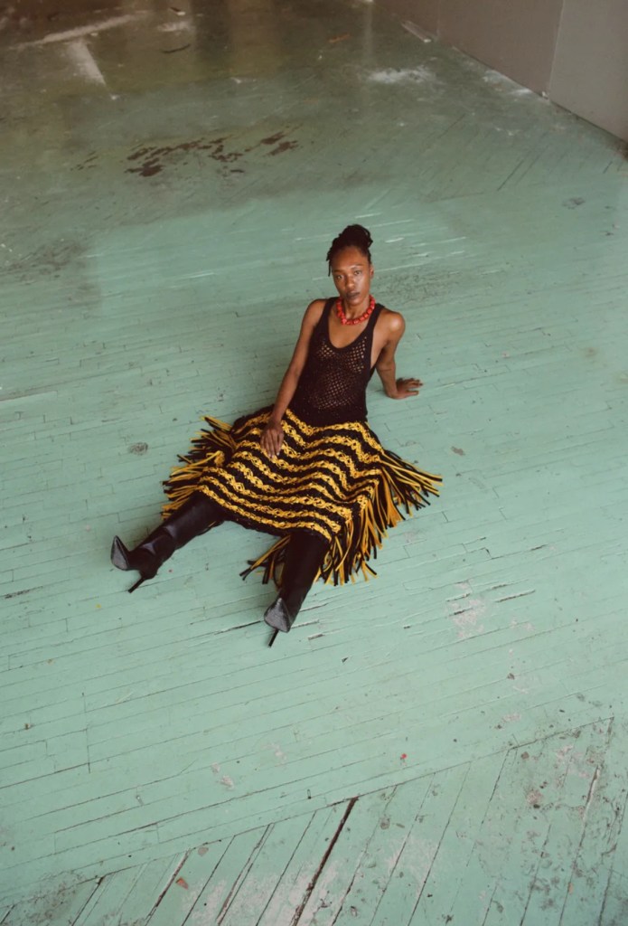 It’s all in the details of the garments when it comes to the Diotima FW24 collection for New York Fashion Week, and taking influence from her Jamaican heritage she delivers a stunning ensemble of looks. The combination of crochet techniques mixed with the cutout patterns that are expertly placed to highlight different parts of the body create the perfect day to night pieces. The fun use of fringe throughout the collection added a lovable appeal that would cater to those that like a little movement with their look, whereas other pieces full of silver-like floral appliques were so stunning they looked almost to be encrusted from afar. Not only are the earth and rustic tones of the collection modish, but they’re perfect for the impending return of western themed fashion as well, as seen by the FW24 Men’s collection from Louis Vuitton by Pharell & Beyonce’s new music offerings (I personally like 16 Carriages more. We all have our favorite). What I personally love about the clothing is that they are versatile, and the cutouts and crochet patterns allow for ventilation in the fall time while the woven material helps capture heat when layered in the winter. I hope to see these pieces in a few street style videos in the later months of the year. Absolutely love!