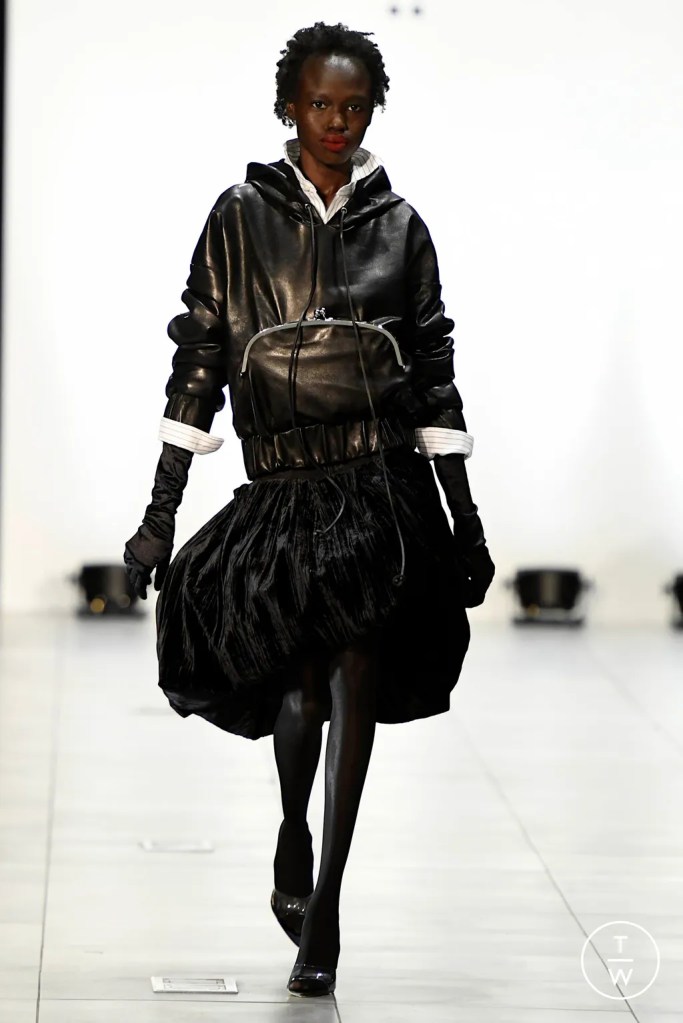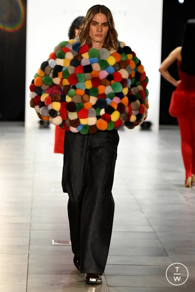 The mixed use of fabrications, construction techniques, and pops of bright colors like rustic oranges and saturated citrines really set the tone for a stylish casual collection with bold dressier options as well. Much like the shows previously mentioned, the outerwear was delightful to gawk at, with my personal favorites being black leather trench with what looks to be a block motif & a colorful concoction of felt-like balls that make up the entirety of the garment. The jacket is a lot, but it’s also a perfect statement piece for when its colder and pallets are more neutral. Double breasted tailored options included an oversized pinstripe, velvets and a chrome-like silver number, while puff skirts were played with on dresses and with an intriguing leather sweatshirt. The coinpurse detail on a select few looks were intriguing as well and something I hope we get to see incorporated in different ways with his later work. His presentation was enjoyable and excelled at catering to multiple crowds. I often found myself putting together quick 10 second outfits with the pieces I enjoyed, and I’m sure I wasn’t the only one either!